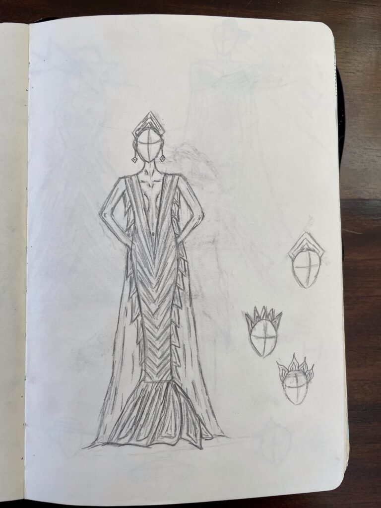 Cette robe confectionnée à partir d’un tissu en provenance de Singapour, sera porté lors de mon bal de promotion 2024.