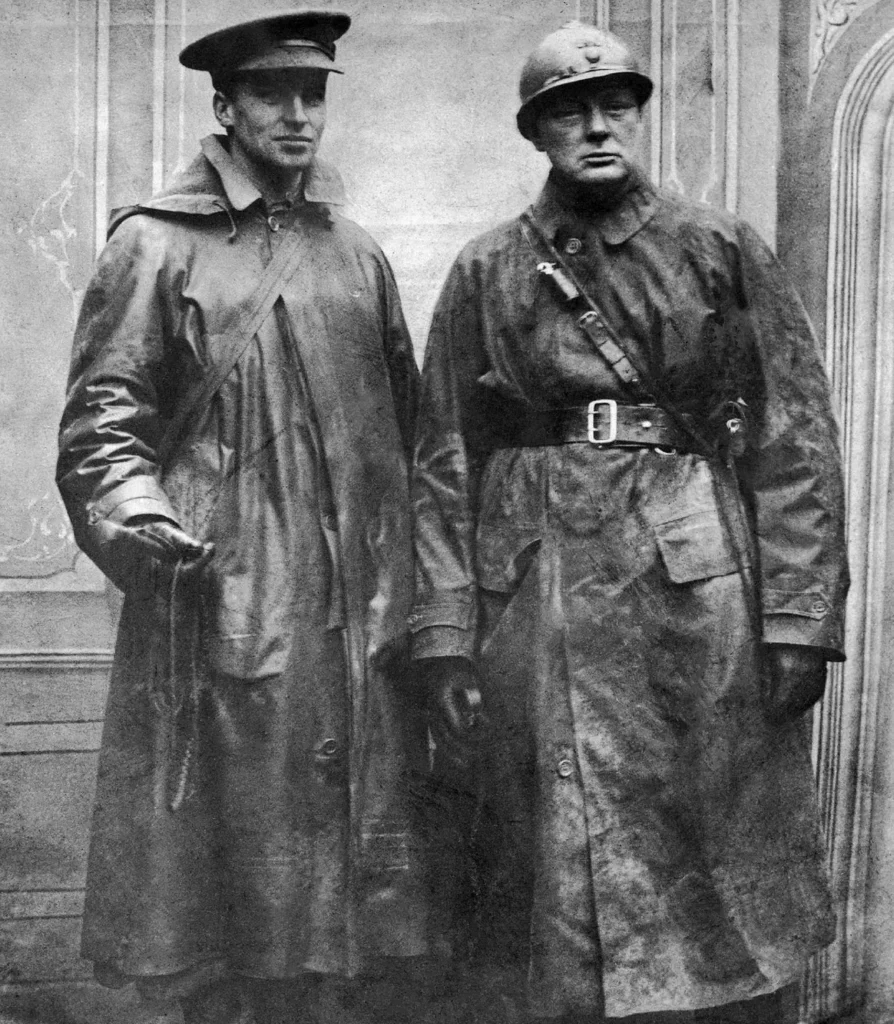 À droite, Winston Churchill en trench-coat, en mars 1916. -GETTY IMAGES-